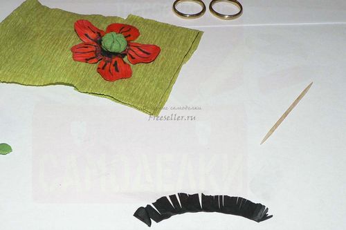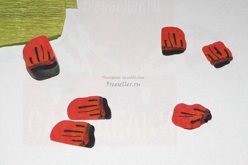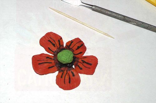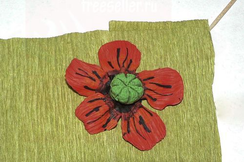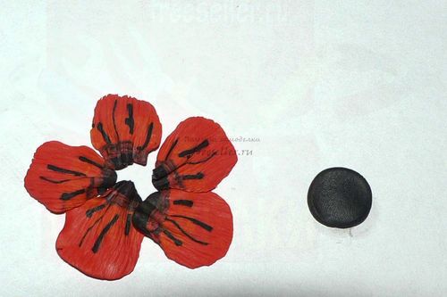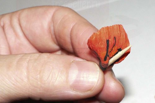 Формируем шарик - это сердцевина нашего мака, помешаем между лепестками. Делаем насечки, как это бывает у настоящих маков.