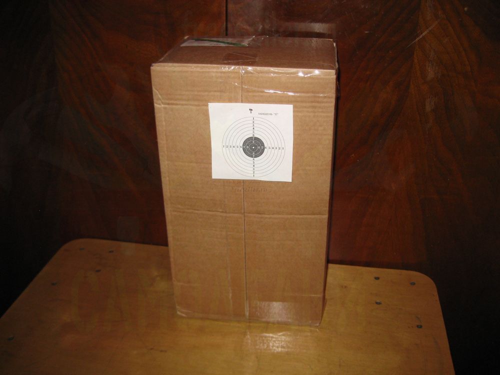 Затем укладываем ее на дно картонной коробки, которая у нас будет служить пулеулавливателем. Кстати по размерам они практически совпадают, благодаря чему нам не нужно ничего отрезать и в итоге наша работа значительно упрощается.