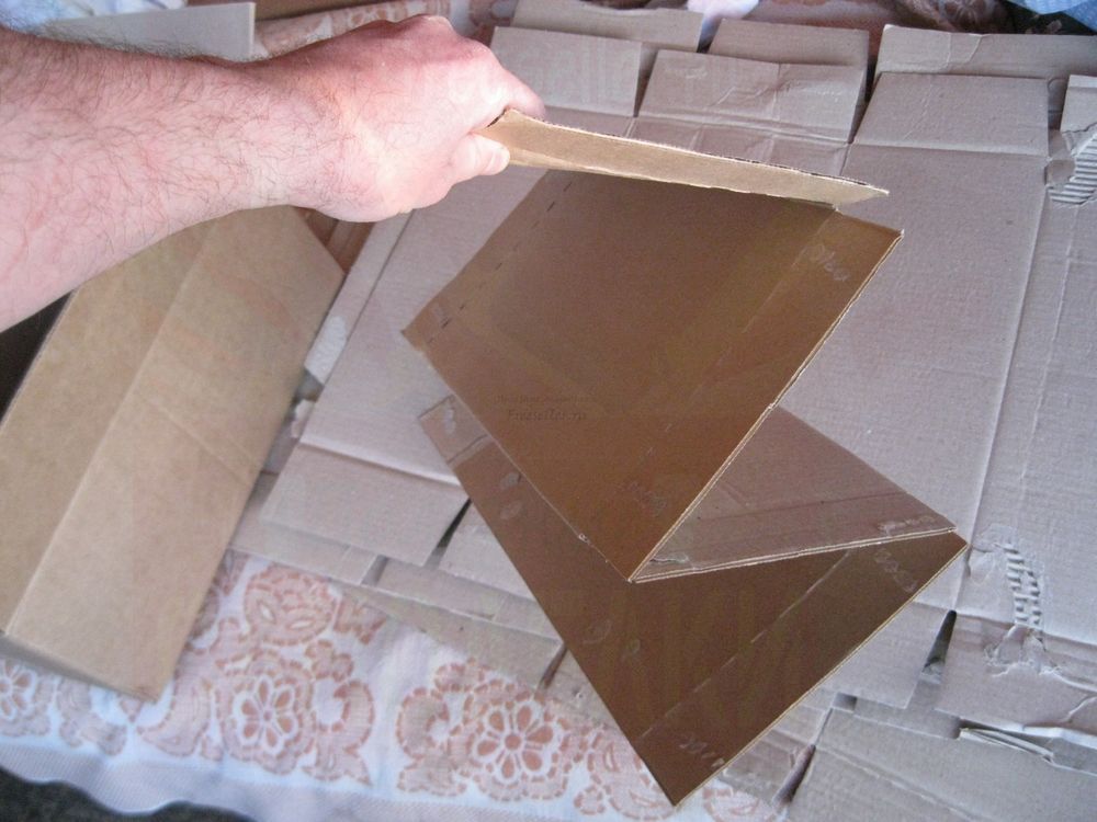 Сначала мы берем одну из разложенных коробок и складываем ее гармошкой.