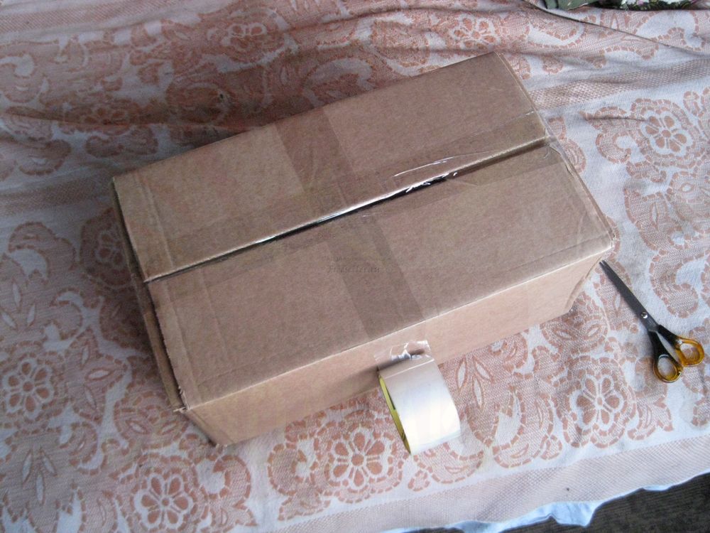 Кстати, для большей надежности и прочности можно обклеить нашу коробку скотчем с двух сторон.