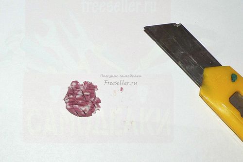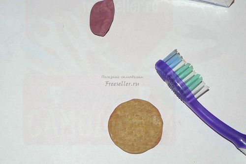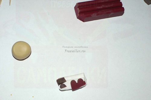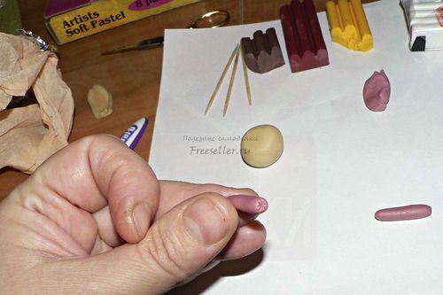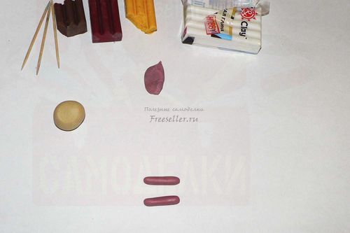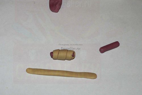Для создания сосисок в тесте нам понадобится пластика цвета сосисок - для этого смешиваем белую и немного коричневой и бордовой пластики.