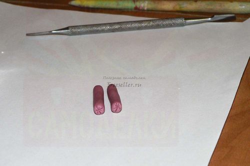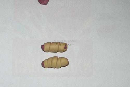 Лепим сосиски и с кончиков наносим насечки как у настоящих сосисок.