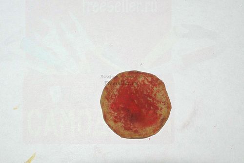 Измельчаем красную и оранжевую пастель и кисточкой прокрашиваем середину будущей пиццы, имитируя кетчуп.