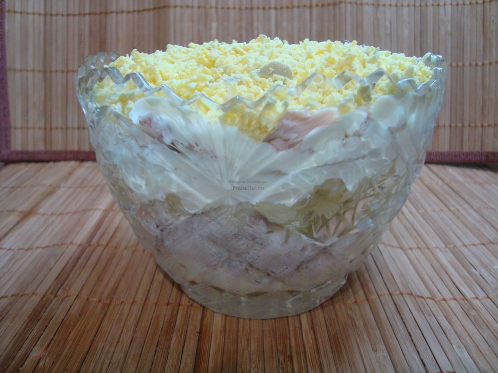 Еще раз повторите все слои за исключением белков яиц, их достаточно в салате в один слой.