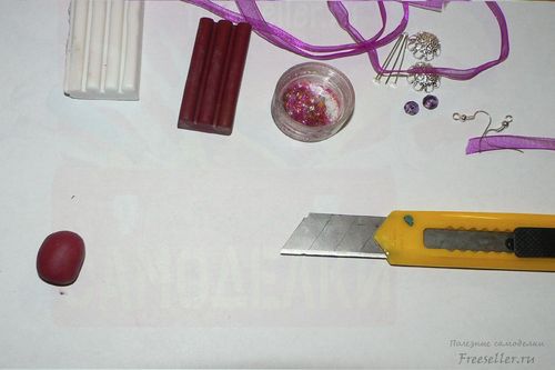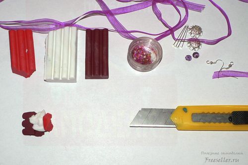 Начнем с того, что в основной бордовый цвет пластики вмешаем немного красного и белого. Далее работаем с получившимся оттенком - это базовый цвет.