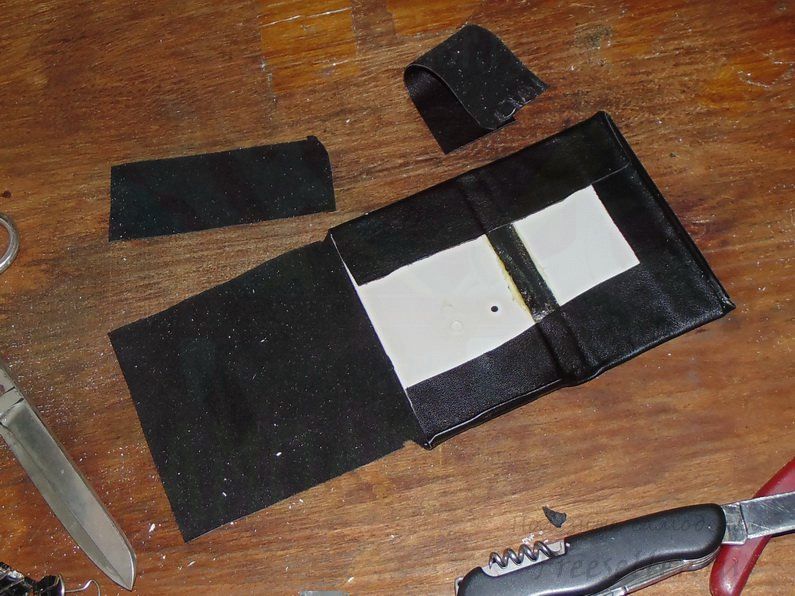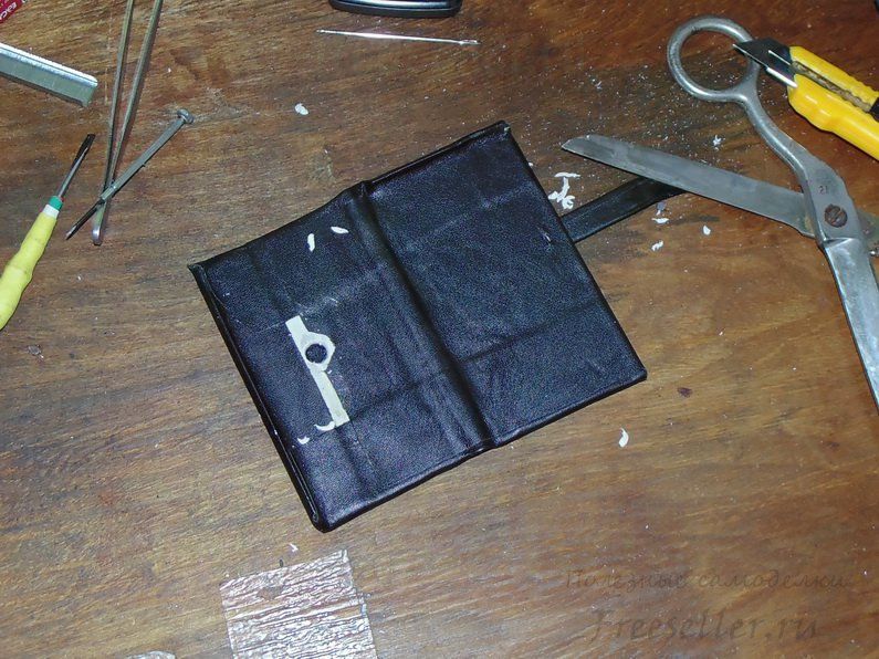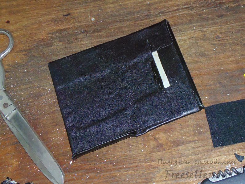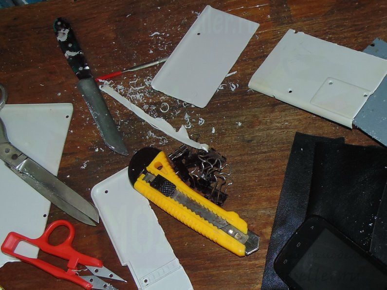 Отмечаем и отрезаем на пластике кусок по размеру телефона.