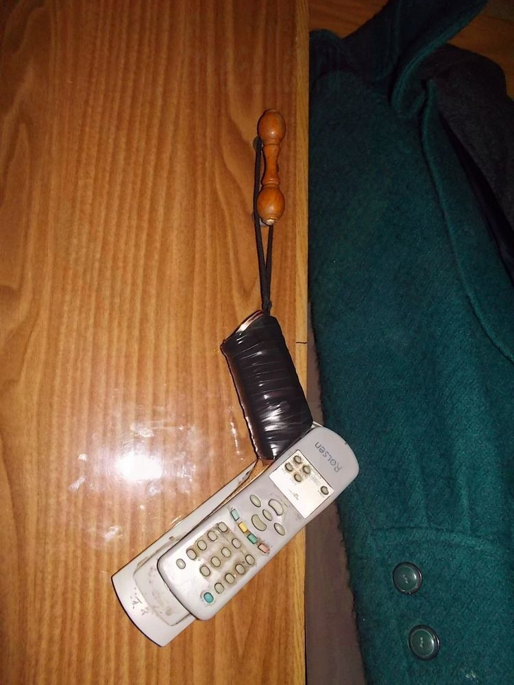 Пульт для ТВ и ДВД в виде игрушечного пистолета. Очень удобно-сам пользуюсь более 5-ти лет.