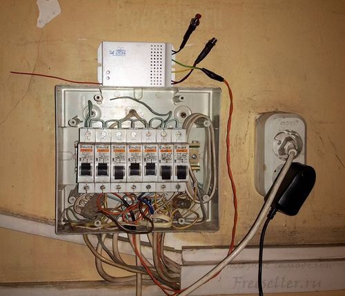 Модуль реле разместили на электрическом щитке, закрепив с помощью двух стороннего скотча, провод от автомата к насосу пропустили через контакты реле.