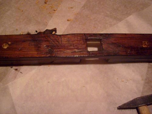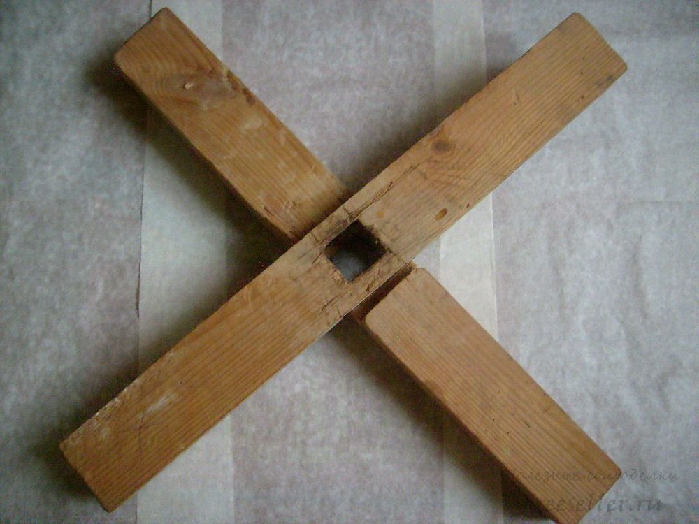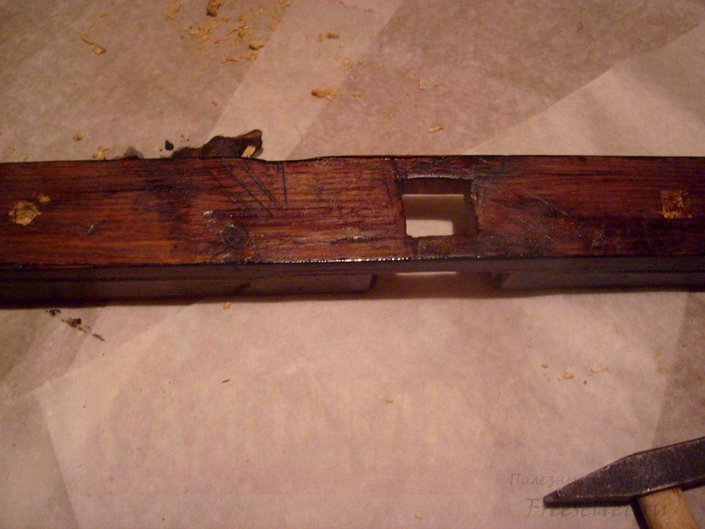 4. По разметке высверливаем или выбиваем с помощью стамески выемки на обеих перекладинах.