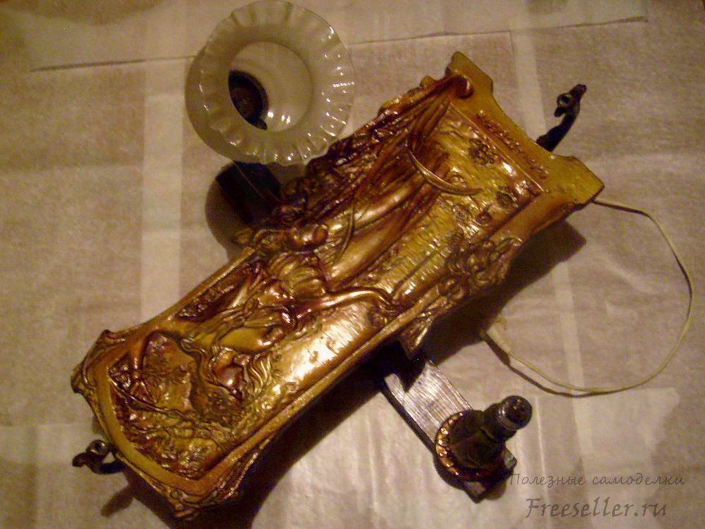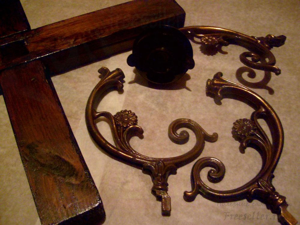 3. Три рожка люстры станут основными деталями нашей конструкции. Один из них оставляем с насадкой для крепления плафона и электрическим патроном. С двух других их снимаем.
