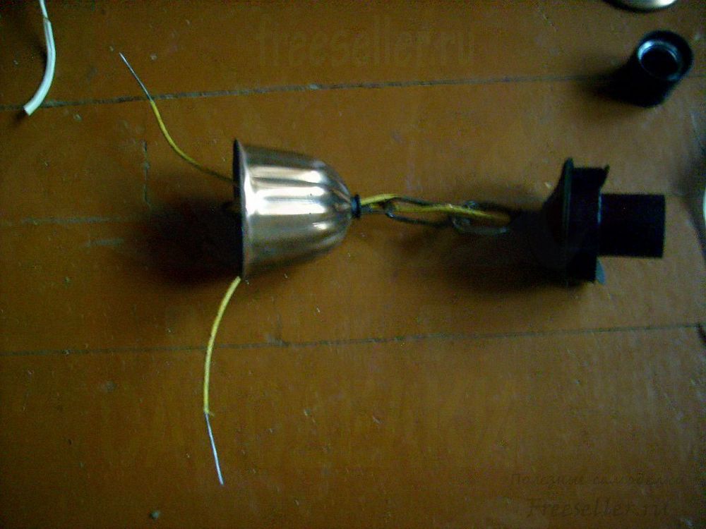 привинчиваем прямо к верхней детали, соединённой с чашкой, внутри которой петля для подвески люстры.