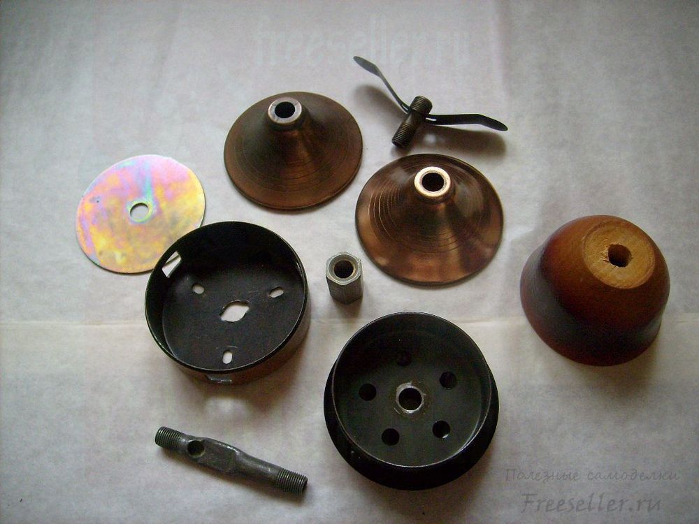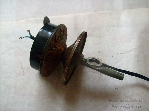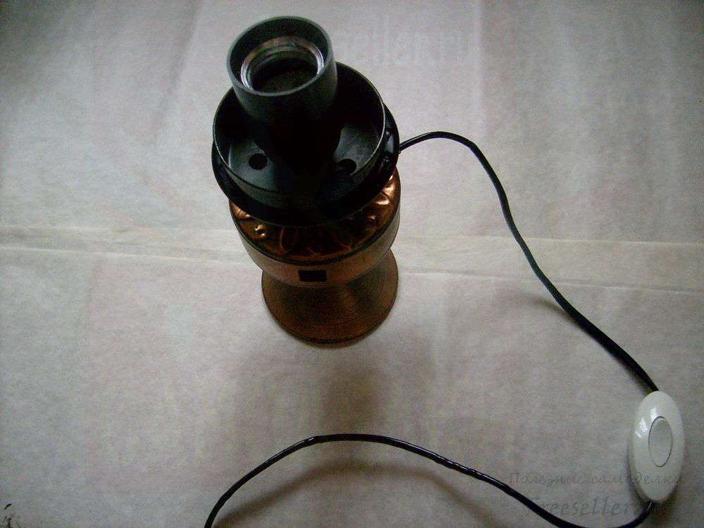 Старая трёхрожковая люстра оказалась очень полезным ресурсом. Её деталей нам уже хватило на напольный и потолочный светильники. Из остатков мы смастерили ещё и настольную лампу. Нам потребовались для этого электрический провод с переключателем и отвёртка.