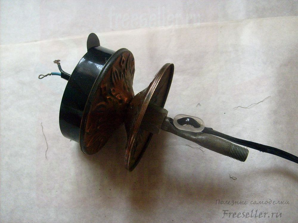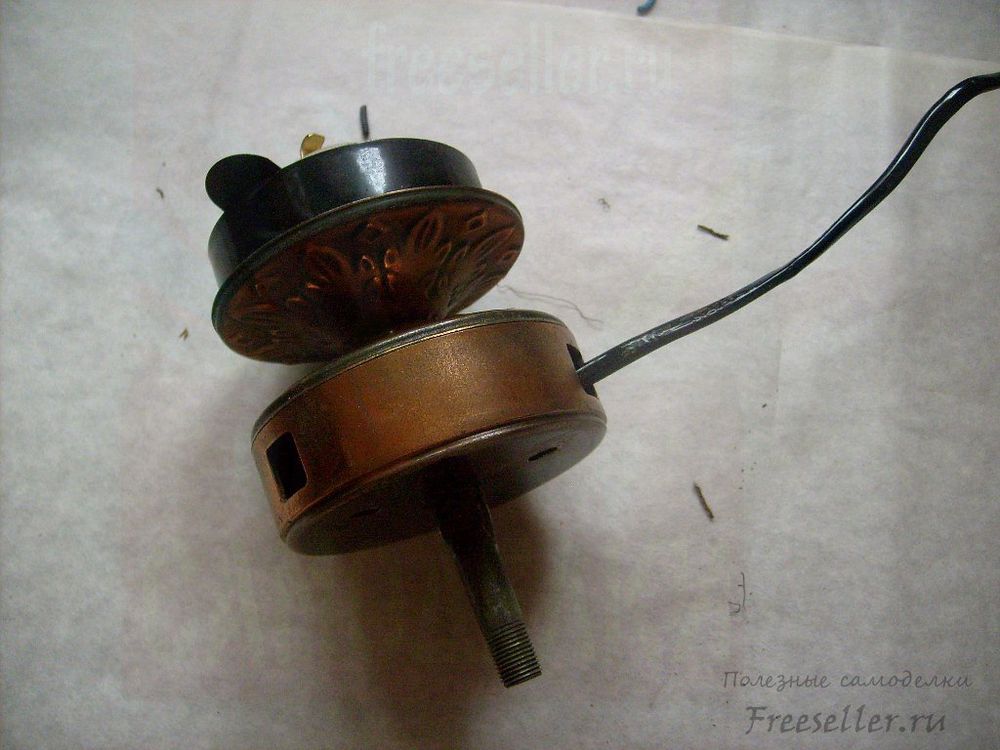 2. Ввинчиваем в неё полую трубку с резьбой и отверстием для выхода провода.