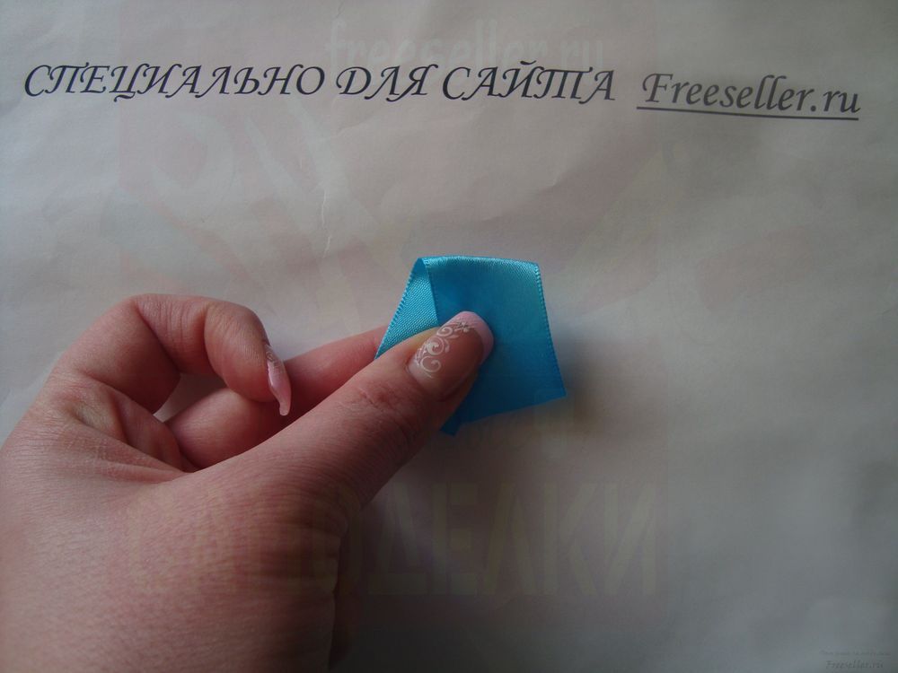 в нижней части лепестка сделайте пару симметричных складок, зафиксируйте элемент и оплавьте атласные края пламенем зажигалки.