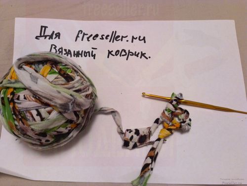 Вязаный коврик из старой одежды крючком.