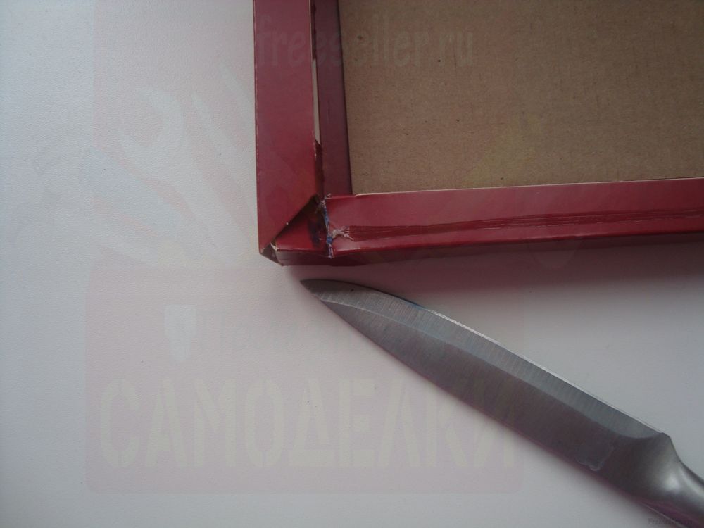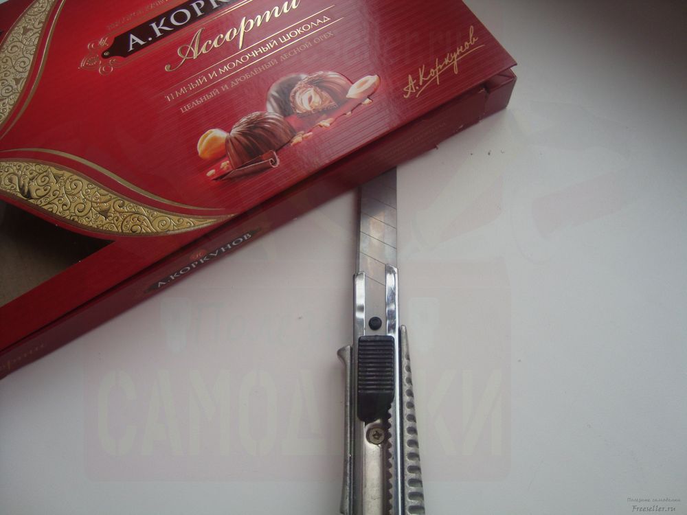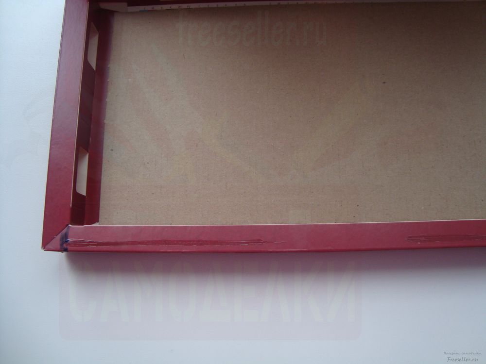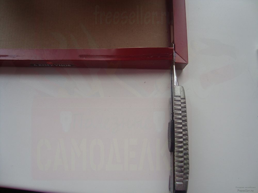 Срежьте ножом боковую сторону у коробки. Низ боковушки тоже срезается, должен образоваться свободный проем.