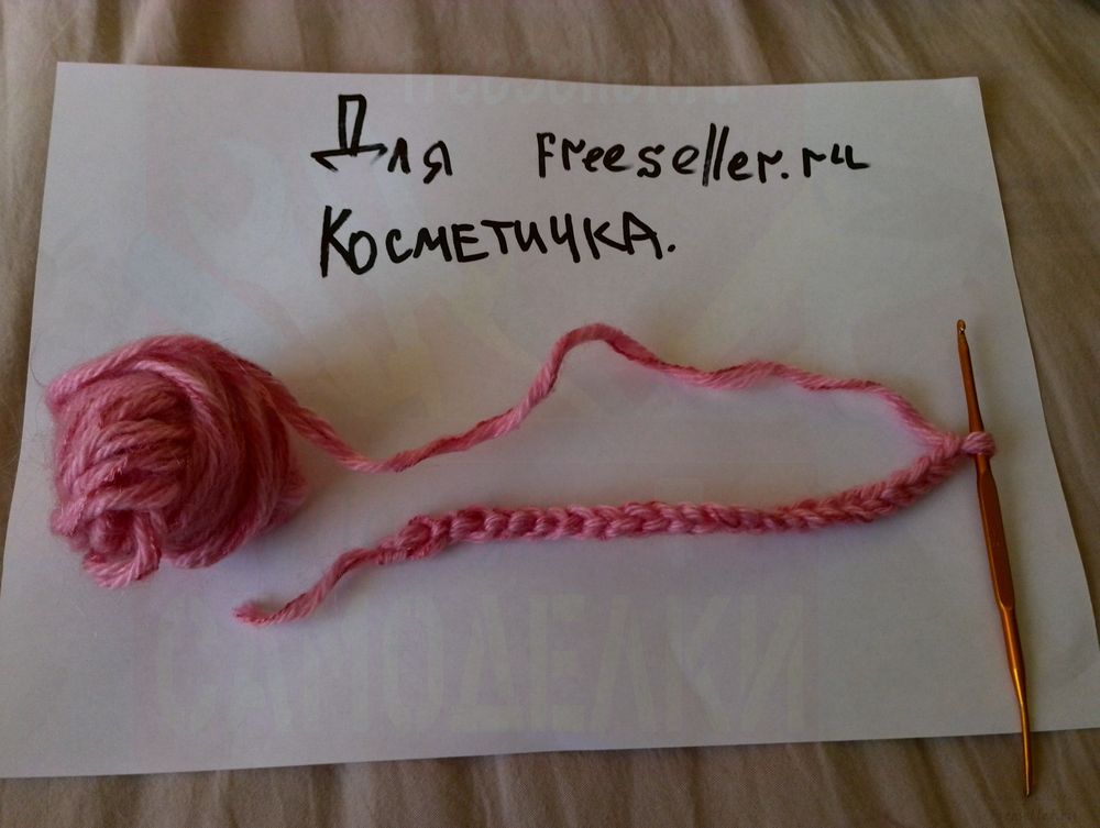 Сначала набираем несколько воздушных петель. Это будет ширина косметички. У меня получилось 30 петель, но это толстые нитки.