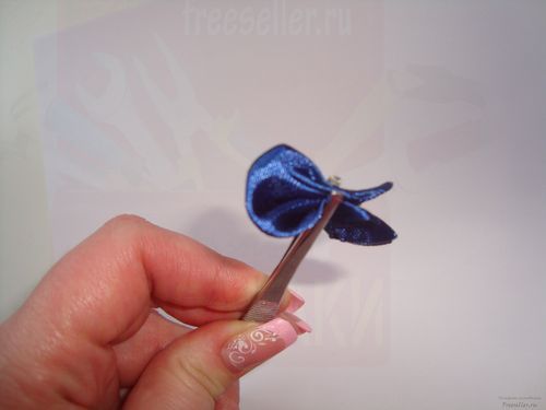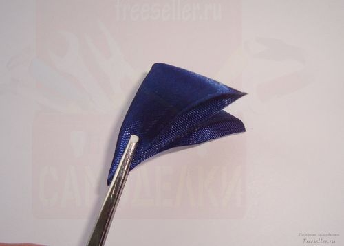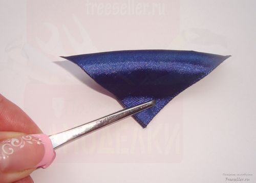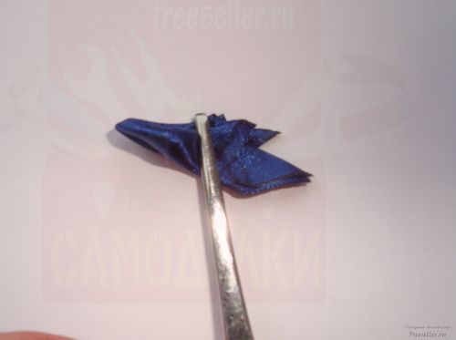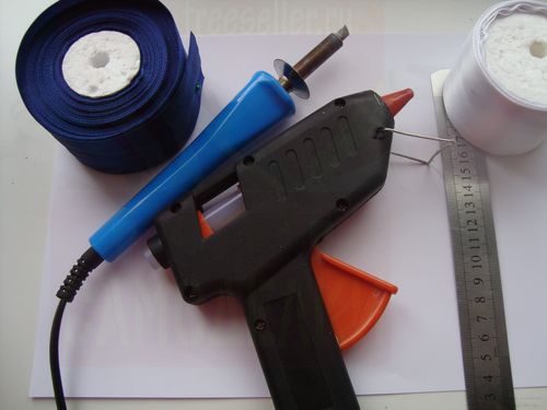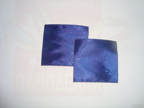 Сначала ленту нужно разрезать на квадраты по 5 см. Желательно это сделать выжигателем на стеклянной поверхности. В этом случае края атласа не разлохматятся.