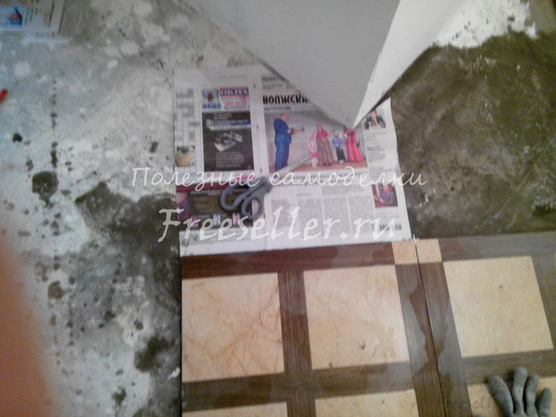 Просто вырезаем нужный шаблон из газеты, переносим отметки на плитку или керамогранит, и отрезаем.