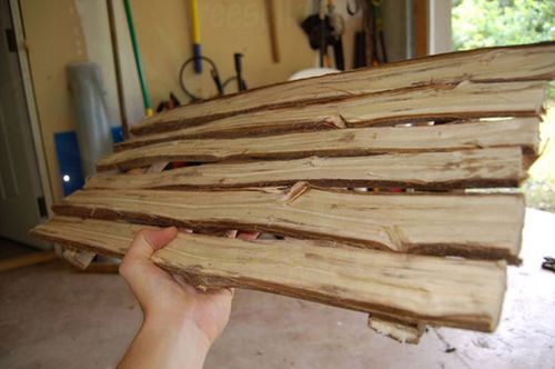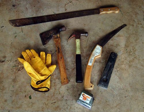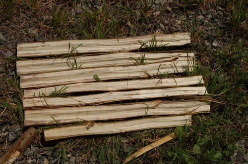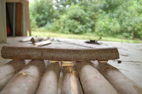 Как видите, никаких бензопил и дрелей, только простые инструменты. И конечно, тонкие стволы деревьев