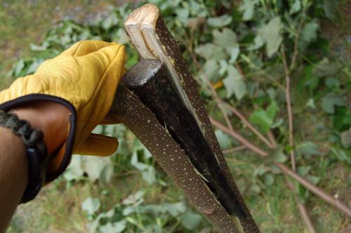 Если нет совсем тонких, можно разрубить их по вертикали позже, в процессе работы. Вырубленные деревца нужно очистить от веток. Если вы нашли подходящее деревце, вначале очистите с помощью мачете траву вокруг него, чтобы было легче добраться до него.