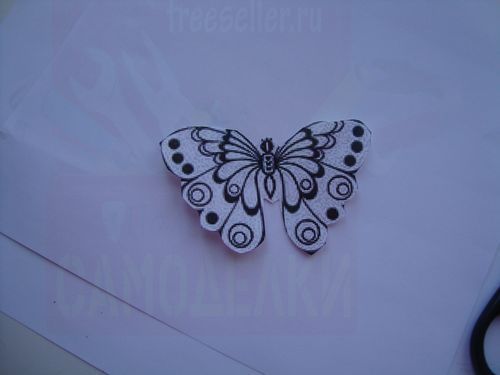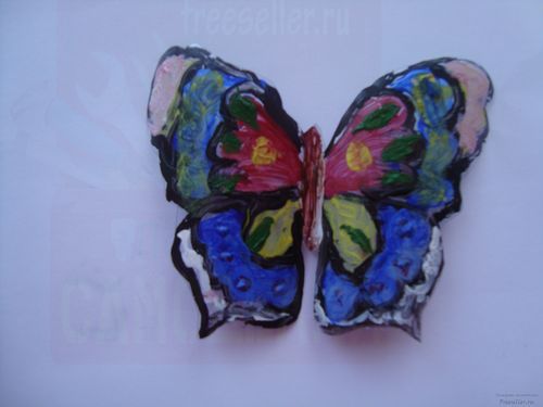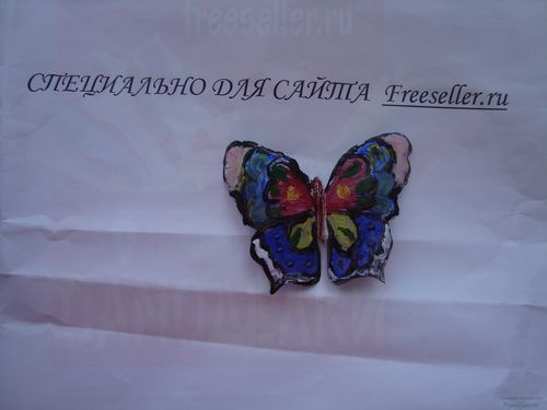 Когда краска высохнет, бабочку нужно вырезать ножницами и перегнуть в середине(вдоль брюшка), иначе крылья будут загибаться в другую сторону.