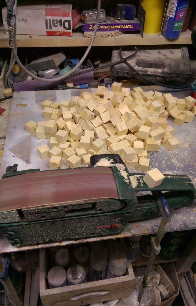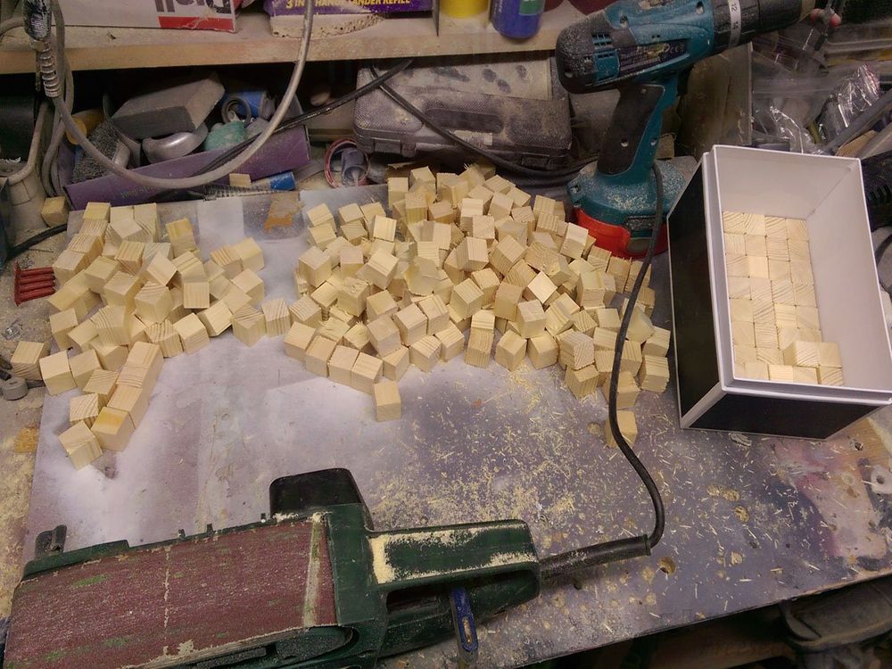 Все кубики обработайте наждачной бумагой, чтобы они были гладкими и приятными на ощупь со всех сторон.