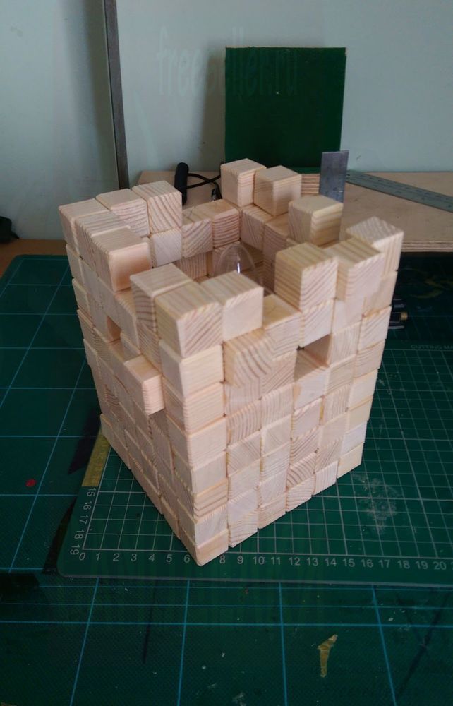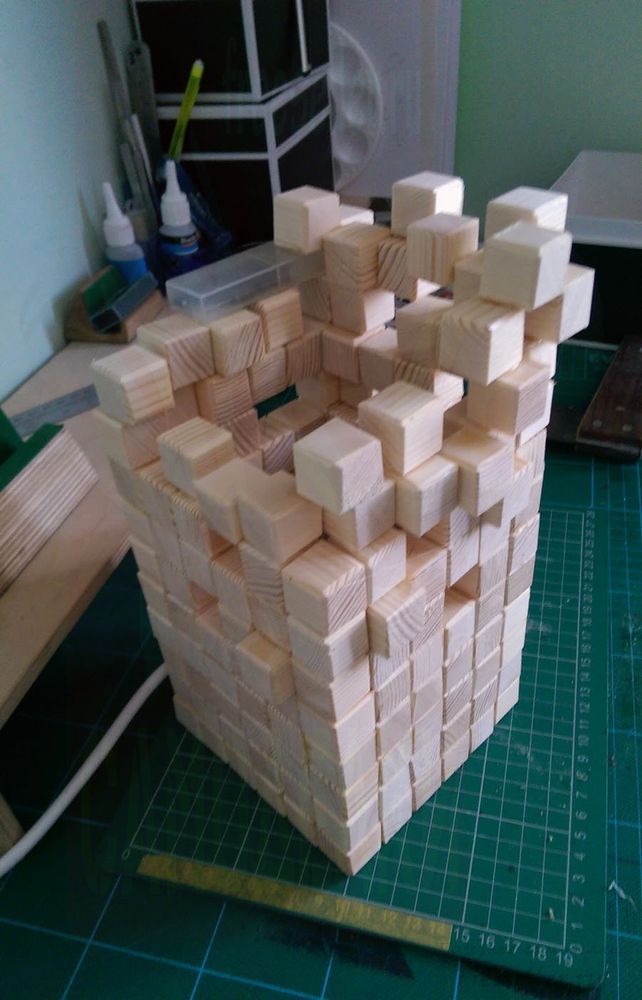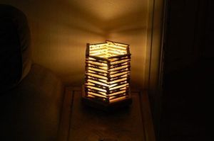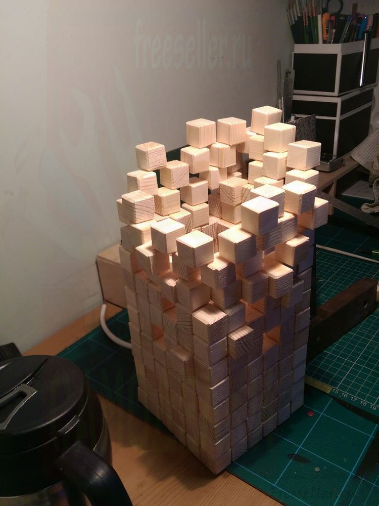 Чтобы украсить помещение можно смастерить оригинальную необычную лампу из деревянных кубиков.
