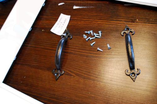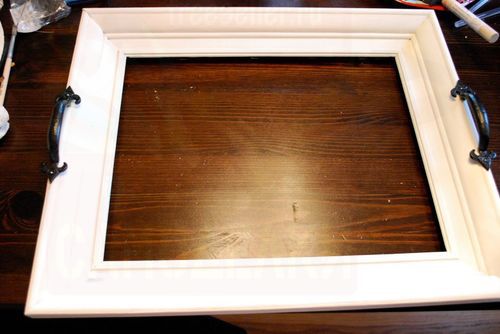 У подноса обязательно должны быть ручки. Куда же без них. Отлично подойдут ручки железные от комода или шкафа. Они будут смотреться оригинально. Но, если таких нет, подойдут любые, главное чтобы они были крепкими.
