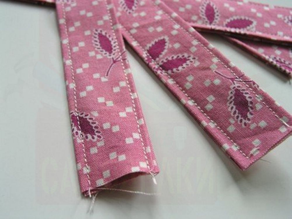 Из оставшихся кусочков ткани теперь нужно сшить четыре петли, на которых будет держаться корзина. Петли должны быть прочными. Поэтому пред тем как их сшивать, возьмите выбранные кусочки и сложите в два три слоя, только потом сшейте их.