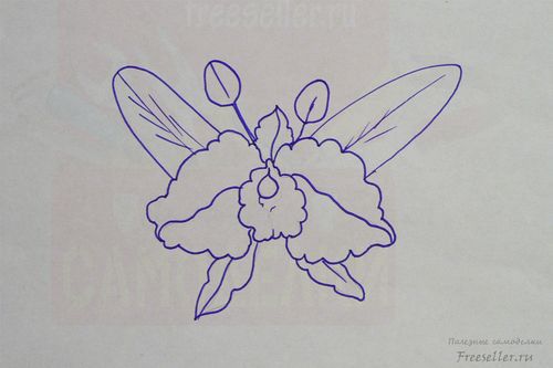 Начнем работу с создания эскиза - выберите любое изображение орхидеи и перерисуйте его в том размере, в котором хотите создать украшение.
