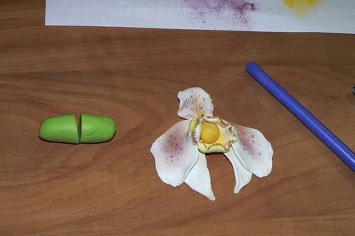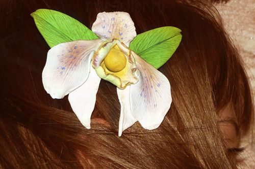 Создание аксессуара для волос в виде орхидеи из полимерной глины - процесс длительный и трудоемкий.