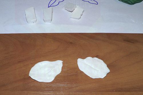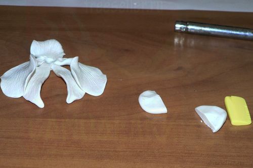 Теперь нарезаем белую пластику на нужное количество частей, сразу прикидывая размер каждого лепестка.