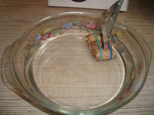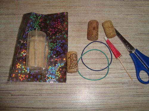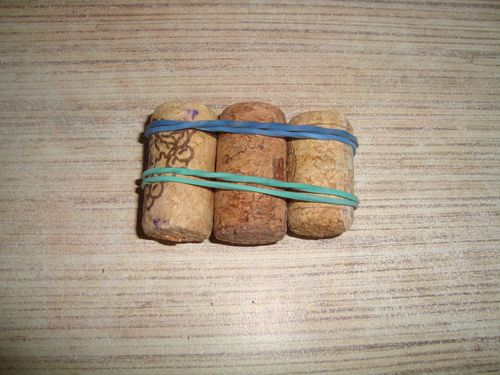 Сначала делаем плот из трех пробок, они и позволят конструкции не утонуть.