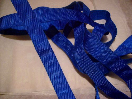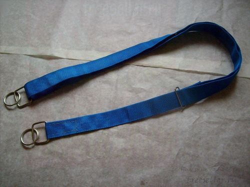 7. Из стропы и пряжек мастерим наплечный ремень. Надеваем на пряжки соединительные кольца.