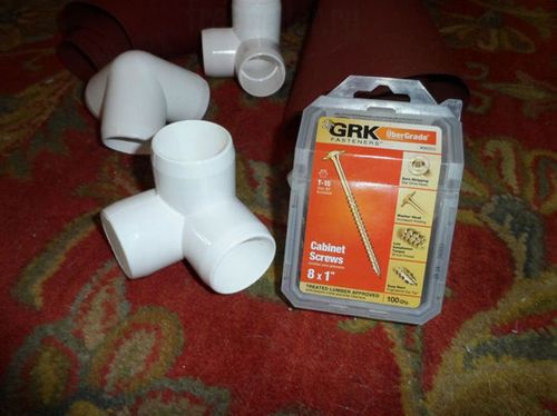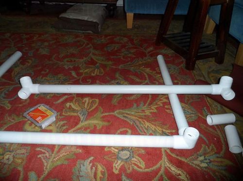 Теперь осталось вставить ножки. Берем кусок трубы и режем четыре небольших кусочка. Длина кусочков зависит от того, какой высоты вы хотите сделать кровать. Кусочки должны быть одинаковой длины, чтобы кровать стояла ровно.