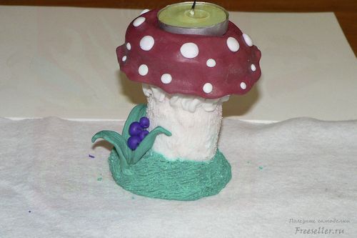 Сегодня в продаже встречается довольно много сувениров и вполне функциональных вещей необычной формы, например, подсвечники в виде фруктовых композиций, овощей и даже грибов, выполненные ограниченным количеством экземпляров. Цена на такие вещички, как правило, «кусается». Они выглядят очень интересно, и ни одна хозяйка бы не отказалась от такой детали интерьера. А что если нам самим сделать нечто подобное, используя полимерную глину, например, подсвечник «Гриб»?