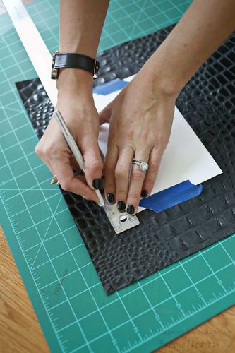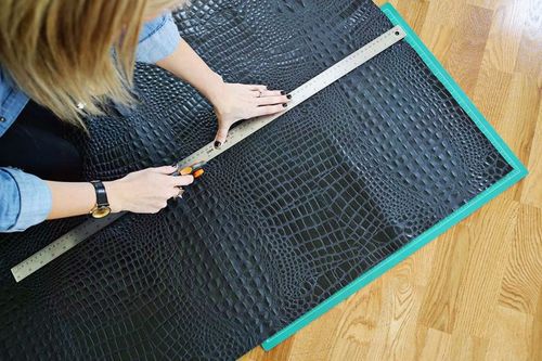 Для того, чтобы раскроить кожу, предварительно сделайте шаблон на бумаге, а после перенесите его на ткань, оставив на припуски примерно по одному сантиметру с каждого края.
