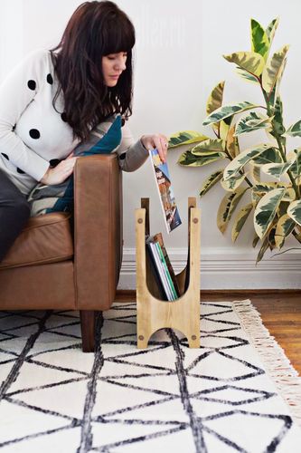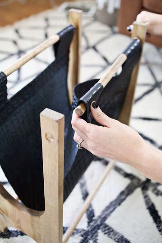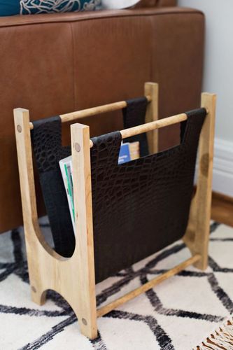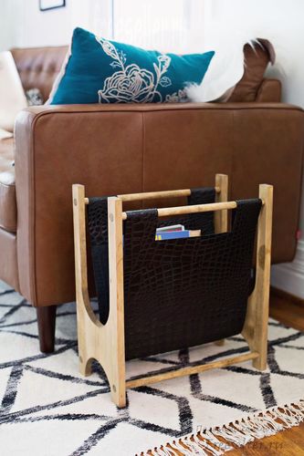 Источник информации: http://www.abeautifulmess.com/2014/04/wood-leather-magazine-holder-diy.html