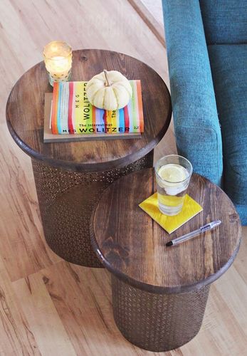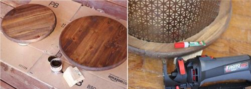 Из древесины нужно вырезать круг, диаметр которого больше, чем диаметр цилиндра - основания. Это - будущая столешница. Отшлифуйте ее так, чтобы она стала идеально гладкой, а после этого покройте морилкой или пропиткой. Покрытие можно (и нужно) нанести, как минимум, в два слоя и дать хорошо высохнуть. Если вы хотите придать дереву глянец и защитить его от влаги, сделайте финишный слой - покройте древесину лаком.