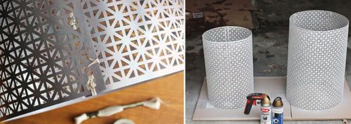 Скрутите из обрезанного металлического листа цилиндр, а для того, чтобы он не разворачивался, свяжите края плотными нитками в несколько слоев.