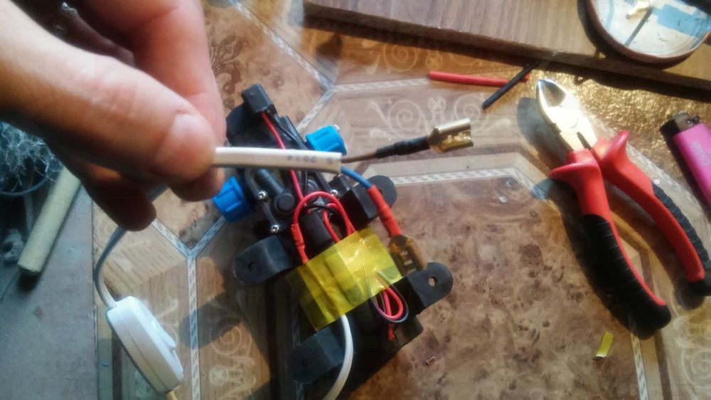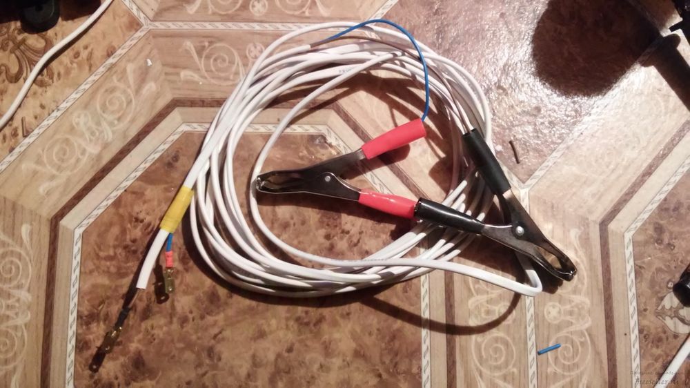 Так же я сделал удлинитель, что бы можно было подключить мойку к аккумулятору автомобиля. Взял три метра провода и на концах припаял крокодилов.
