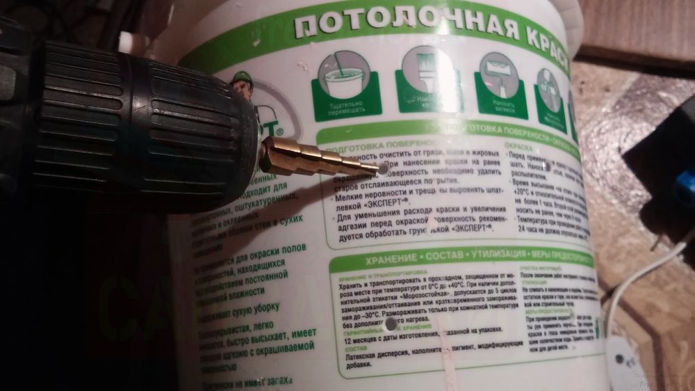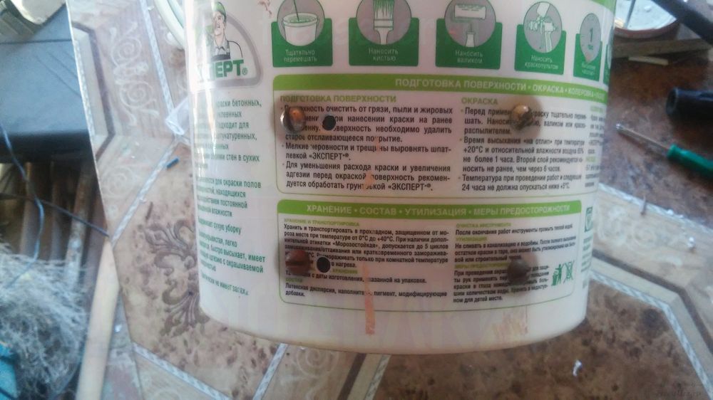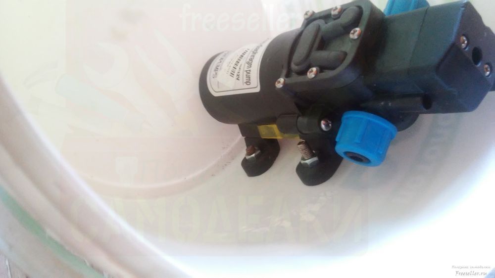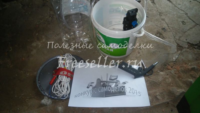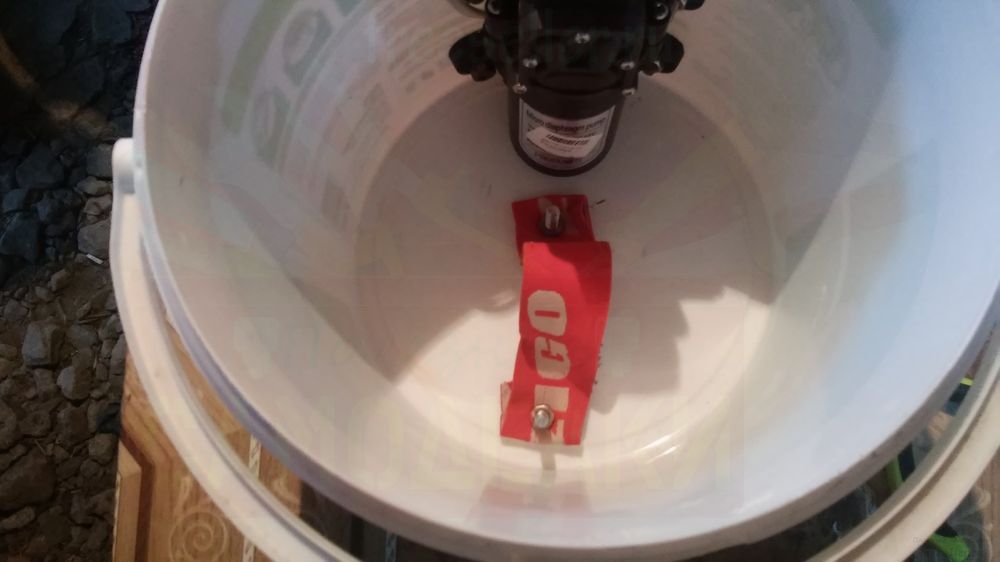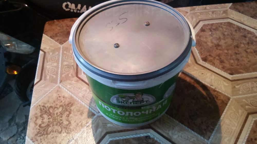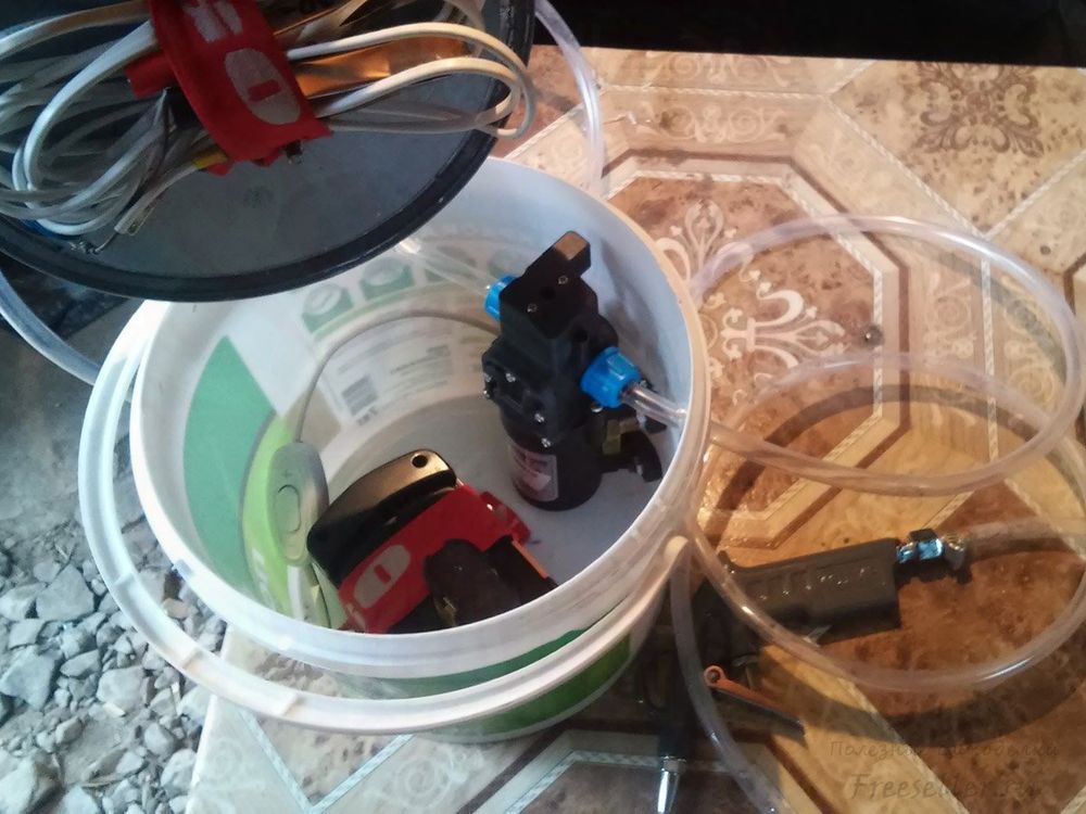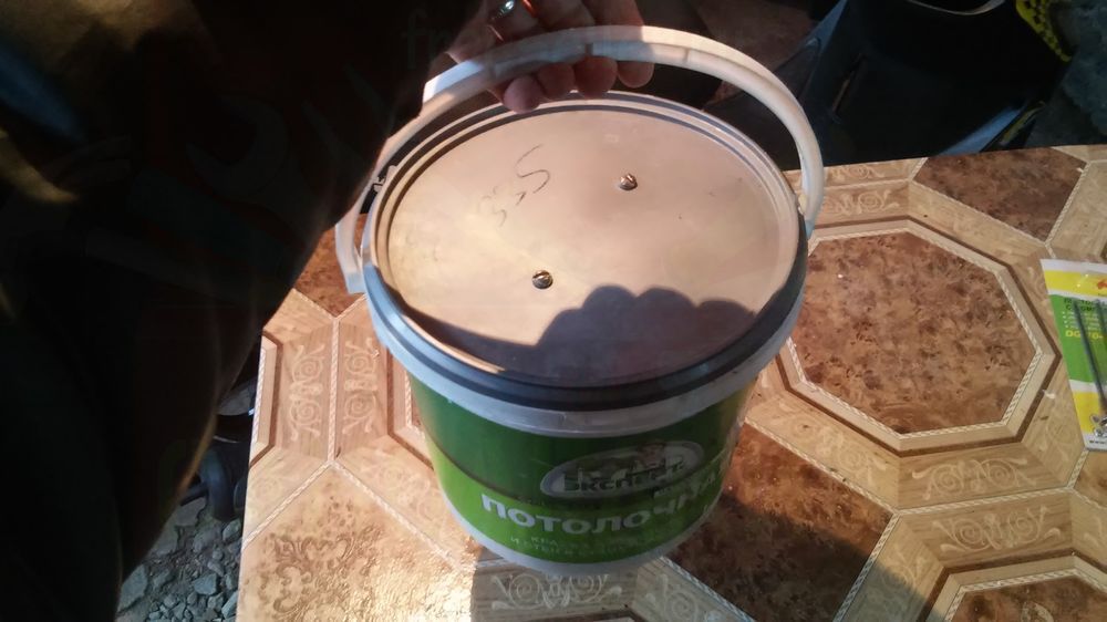 Далее берем ведерко с крышкой из под краски (все таки эти ведерки, универсальные вещи, как например была работа "Строительный гардероб из ведра Шитрок") и как показано ниже на фотках при помощи болтов привинчиваем насос: