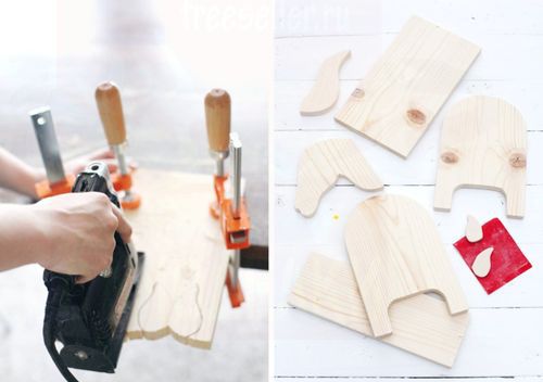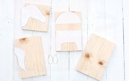 Доски должны быть тонкими, две размером 30 см и одна размером 35 см. Ширина досок должна быть примерно 10 см. Остаточные куски пойдут для головы и хвоста лошадки.