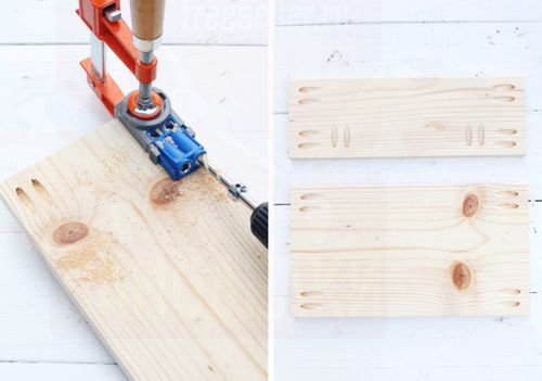 Теперь нужно обработать все части полки наждачной бумагой, чтобы они были гладкими без заноз. По бока длинной доски просверлите глухие отверстия дрелью. То есть эти отверстия не должны быт сквозными.