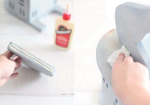 Подберите понравившийся цвет краски и нанесите ее при помощи кисточкой на все вырезанные изделия. Если есть избыток краски уберите его при помощи мягкой тряпочки. Дайте деталям хорошо высохнуть.