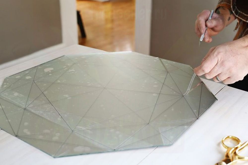 Источник информации: http://www.abeautifulmess.com/2015/03/gem-mirror-diy-easy-glass-cutting-technique.html