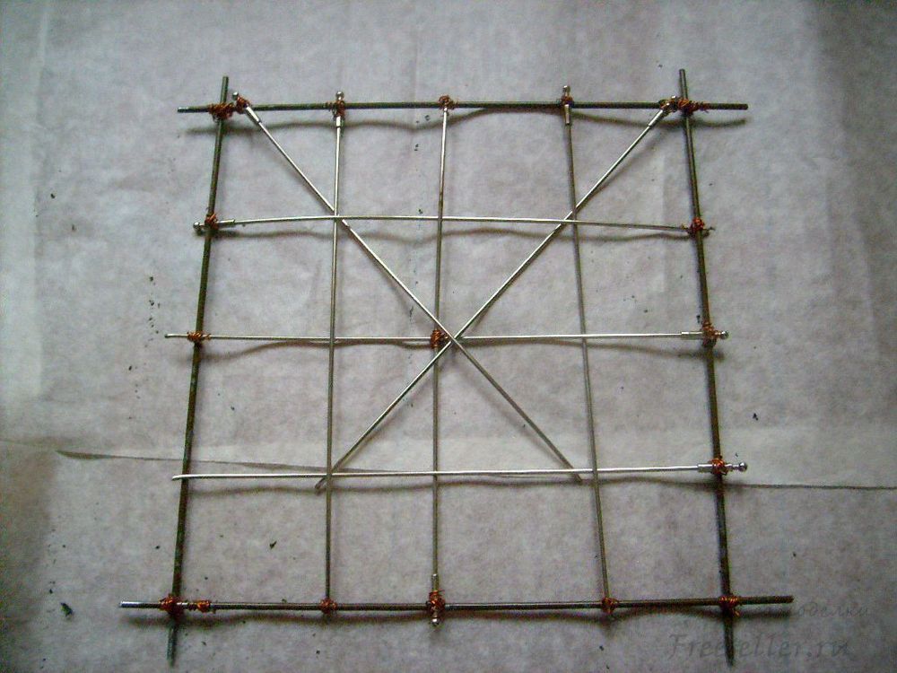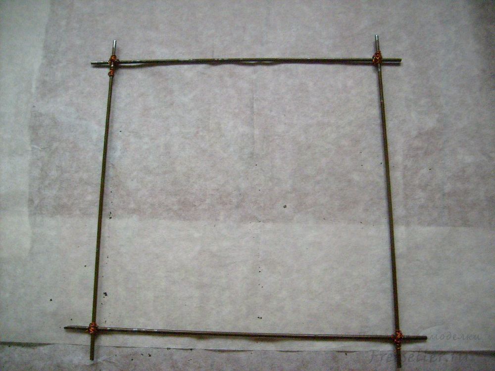 2. Cкладываем прутья и прочно скрепляем их проволокой.