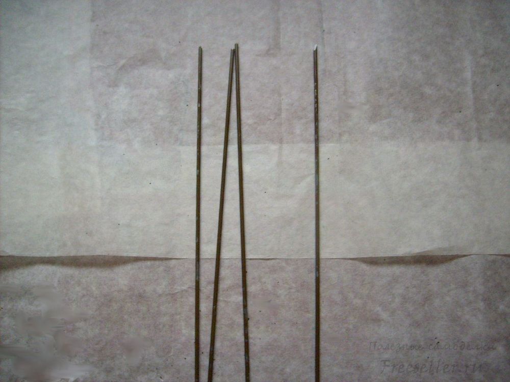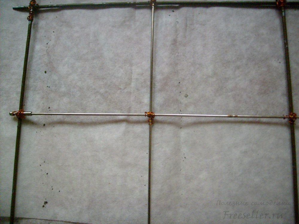 Прутья при этом продеваем друг под друга. Их переплетение усилит жёсткость конструкции.