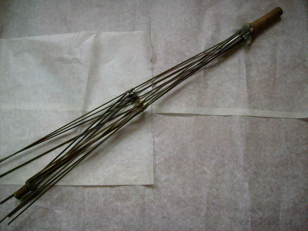 Материалом для изготовления решётки стали спицы старых сломанных зонтиков. Кроме них нам понадобились проволока и инструменты - ножовка и пассатижи.